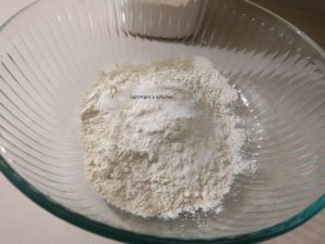 In a wide mixing bowl, add the required amount of whole wheat flour with a tsp of salt, if you are adding the cold butter add at this time )mix well before adding the water