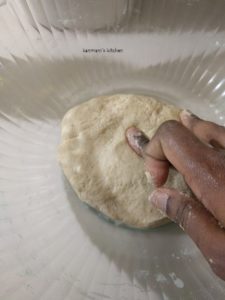 When you are ready to rolled out chapathis at this stage knead the dough well for a min or so for the final texture then the dough is ready to roll out