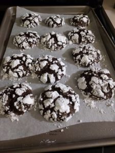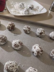 - Scoop out the cookie dough using the ice-cream scoop for even shape and roll the cookie ball on the powdered sugar to cover it completely with the powdered sugar.