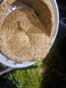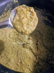 - Heat the cold pressed coconut oil in a pan, add the mustard seeds and cumin seeds, pour the tempered mixture into the okra-dhal mixture, add the grounded masala along with salt and cook it for about 2-3 mins under low flame and turn off the flame.